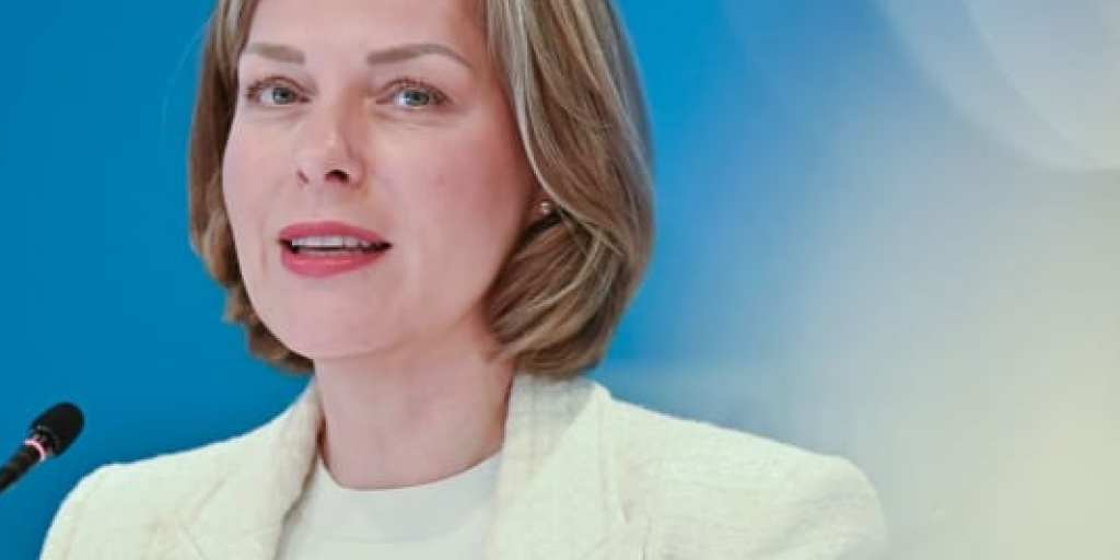 Helena Melnikov, Germany's Chamber of Industry and Commerce (DIHK) Managing Director, speaks at a press conference on the DIHK Economic Survey Early Summer 2025 at the Haus der Deutschen...