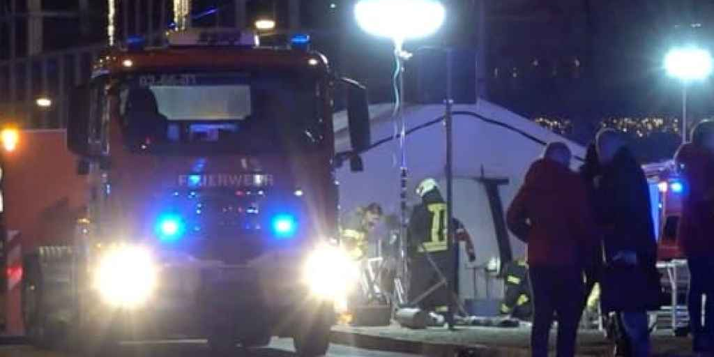 Several people injured by in a suspected car-ramming attack at a Christmas market in Magdeburg, Germany are being treated by paramedics in front of the market stalls.A dpa reporter...