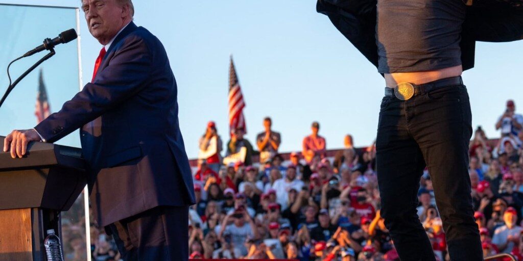 Elon Musk Jumps on Stage and Pumps Fist to Join Trump in Butler as He Recreates Former President’s ‘Fight, Fight Fight’ Slogan after Getting Shot