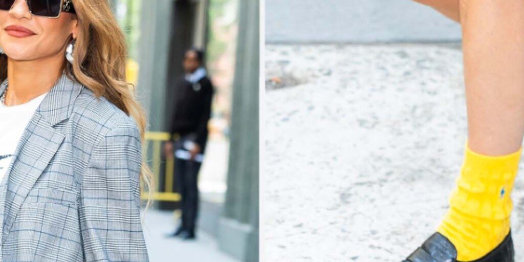 Rita Ora Puts a Preppy Twist on Summer Style With Black Loafers and Sunshine Yellow Crew Socks