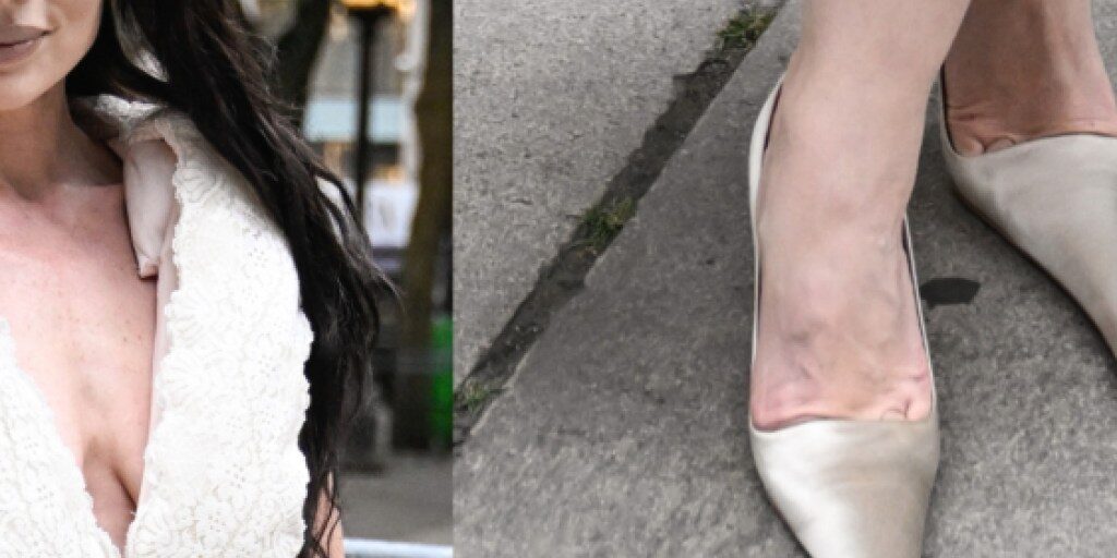Julia Fox Leans Into Wacky Shoe Trend for Marc Jacobs’ Spring 2026 Show With Long-toe Satin Pumps
